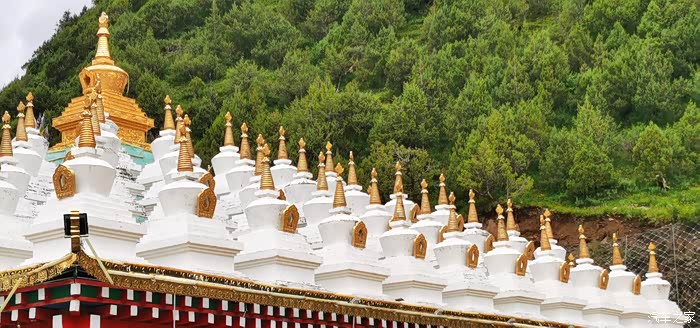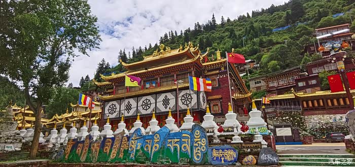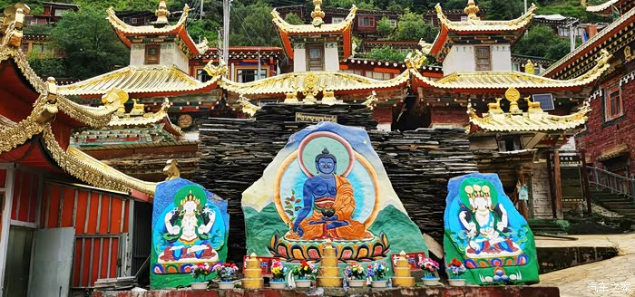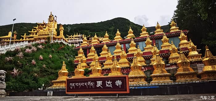 更达寺,马尔康三大寺庙之首,是藏传佛教宁玛派在嘉荣地区的重要寺院,有着近千年历史,建有高达21米的莲花生大师金像,以及18米高的汉白玉四臂观音像。