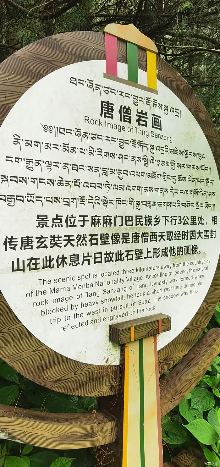 唐僧岩画,唐僧被藏民称为“汉人喇嘛”,传说岩画为天然形成,反映唐僧师徒四人路过此地去印度取经的场景。