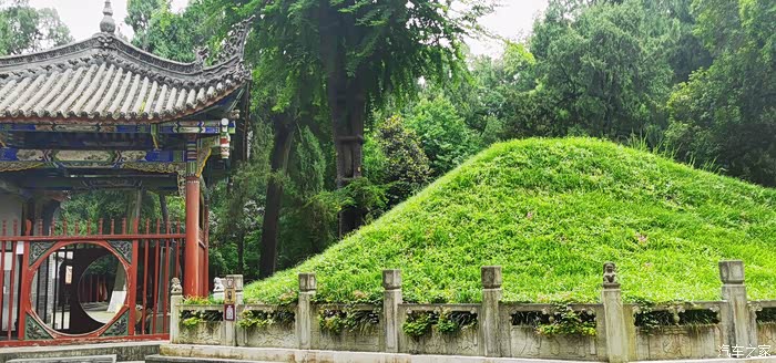 定军山武候墓,公元263年蜀汉皇帝刘禅下诏在勉县为诸葛亮修建的第一座祠庙,并在墓前植柏树54株,喻诸葛亮在生之年。诸葛亮生前被封为“武乡侯”,死后赠谥为“忠武侯”,因为武的本意为“征战示威”,意寓蜀汉朝廷要通过诸葛亮“耀武”而统一天下的愿景。