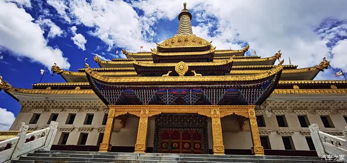 大金寺,藏语意为兴旺发达吉祥洲,“兴旺寺”之意。属格鲁派,大殿造型仿拉萨大昭寺。