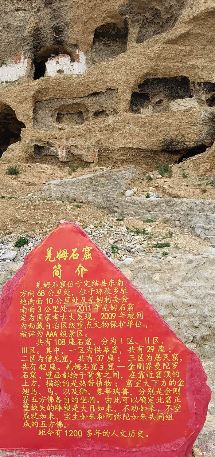 羌姆石窟,位于日喀则地区喜马拉雅山脉中段、中尼边界果美山东侧崖壁上。整个石窟群约有105座洞窟,开窟时代可能早至9世纪至10世纪,其年代下限至迟当不晚于11世纪。