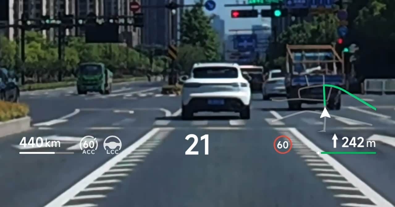 - 开启辅助驾驶后,ACC巡航、车道保持等提示直接“浮”在车窗上,安全感拉满!