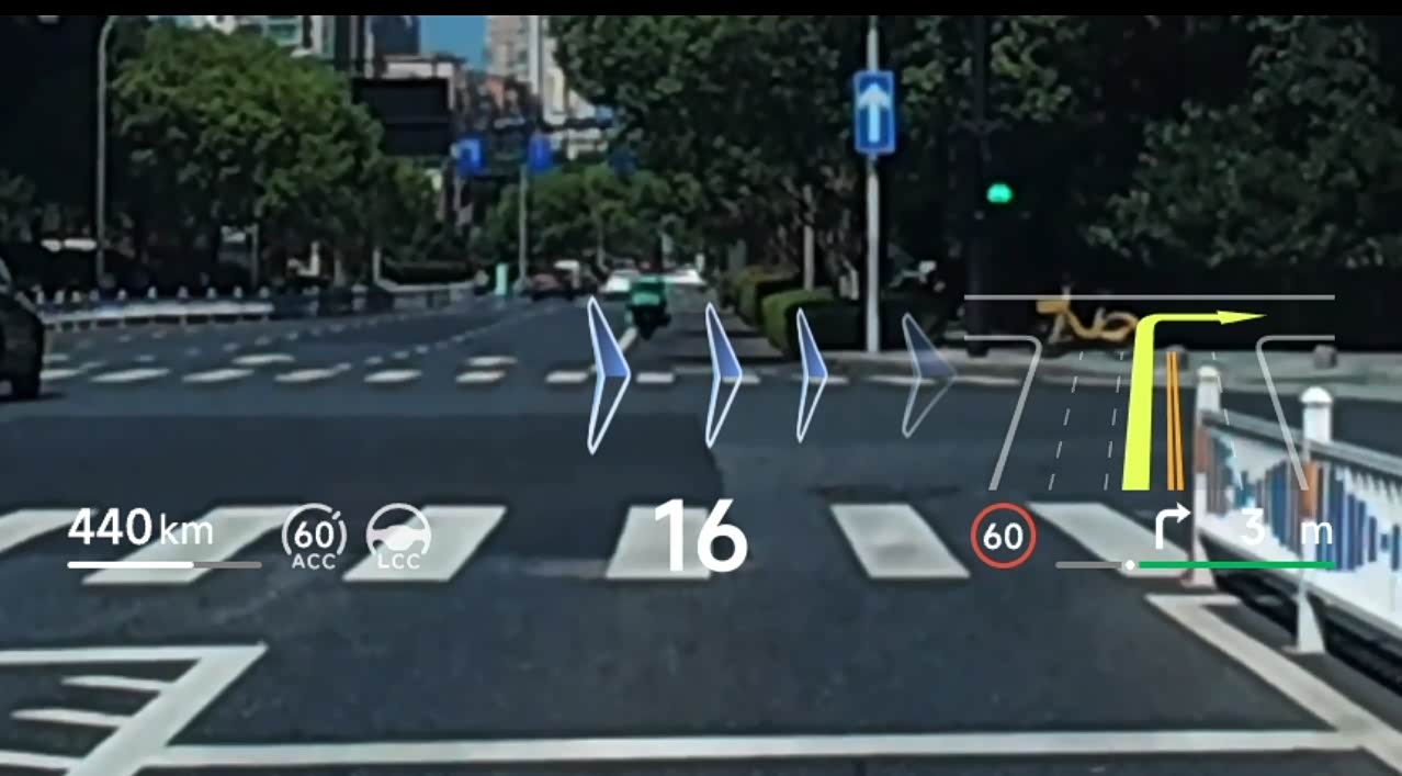 2. 地图模式:路痴救星!完整导航路线+车道指引直接投眼前,再也不用低头看中控屏。