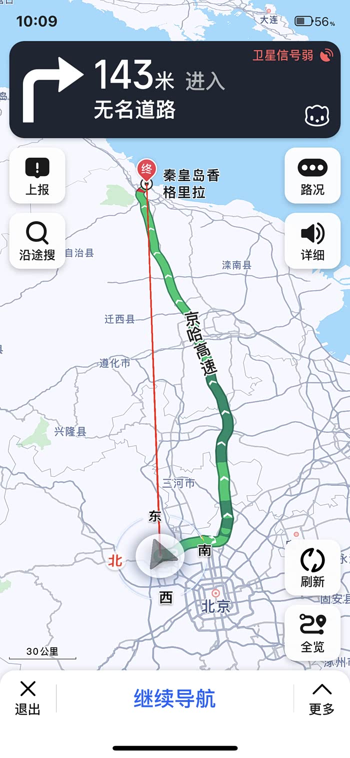 在秦皇岛完了一天之后往回赶。往返一共开了600公里,之前一直跑市区油耗9.8左右,这一次跑了一圈高速,油耗降到8.9。一台2.0T的车9个油的油耗还是可以接受的。