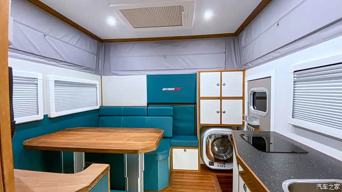 优秀的底盘与强悍的动力,让东风猛士M50游侠在国产四驱越野房车中鹤立鸡群,而其内部实用的空间布局和功能设计,更是满足了车友们越野旅行的各方面需求。就餐方面,内外双厨房设计,带锁碗柜,柴油猛火炉灶,超大冰箱,即便是10人左右的饭菜,也能轻松制作。睡眠方面,对坐沙发变为舒适大床,野外休息依然能安然入睡。盥洗方面,双淋浴、房车专用旋转马桶、一体式盥洗盆,双热水系统,不论是车内洗澡还是车外淋浴,都非常方便。此外车内还有众多储物空间,更配备蓝牙音响、Led电视等等娱乐设备,丰富越野旅行的精神需求。