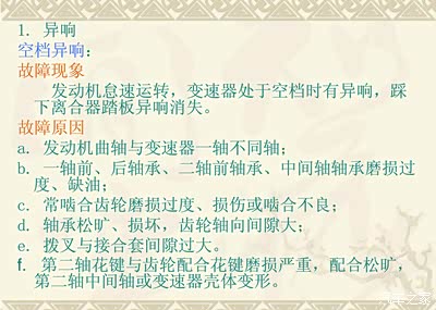 之前的故障1半离合到某个点,吱吱磨铁声音,2热车怠速时变速箱传来哗啦啦的声音,跟柴油车是的巨响,不定时出现,离合到底消失。