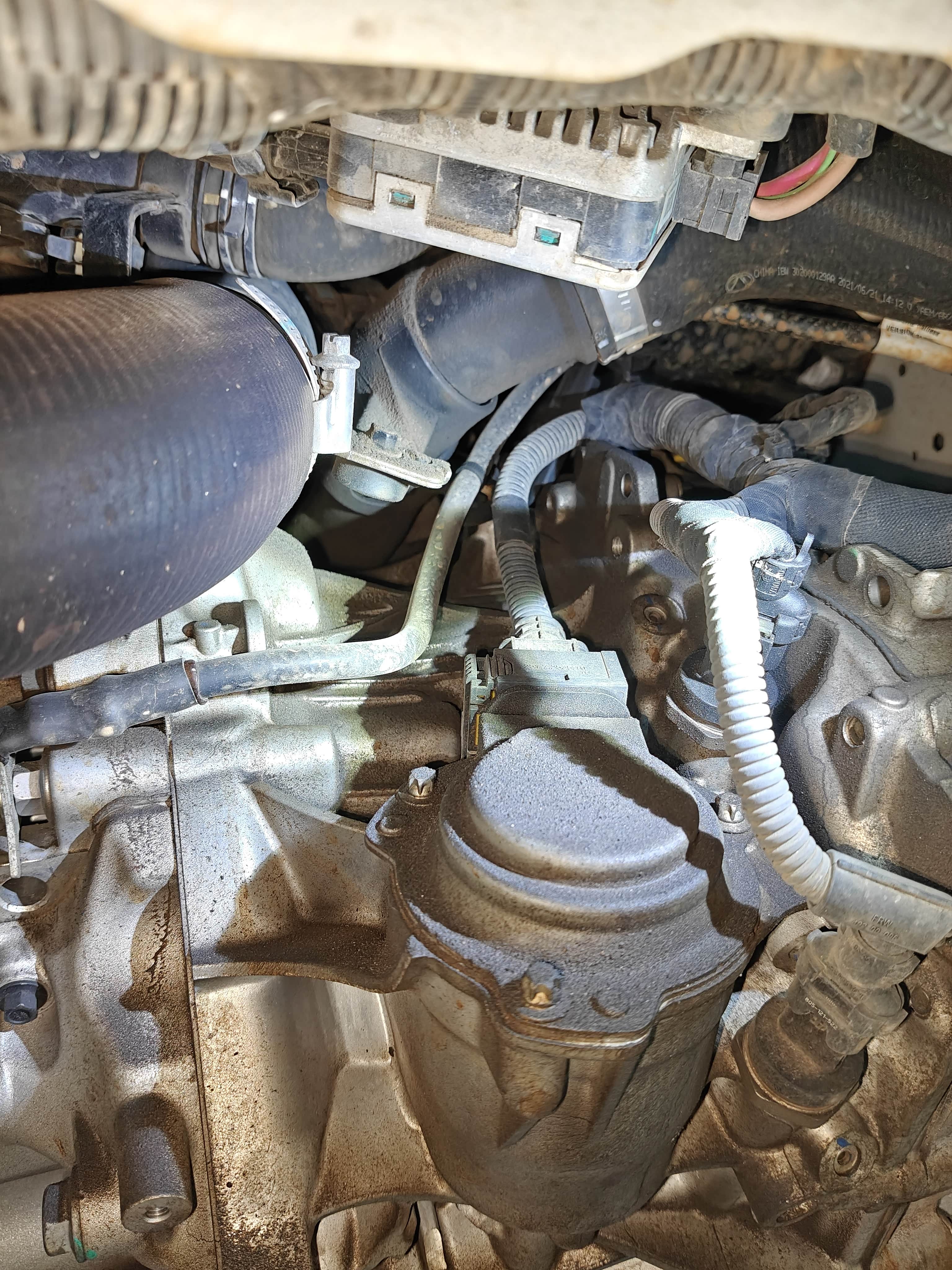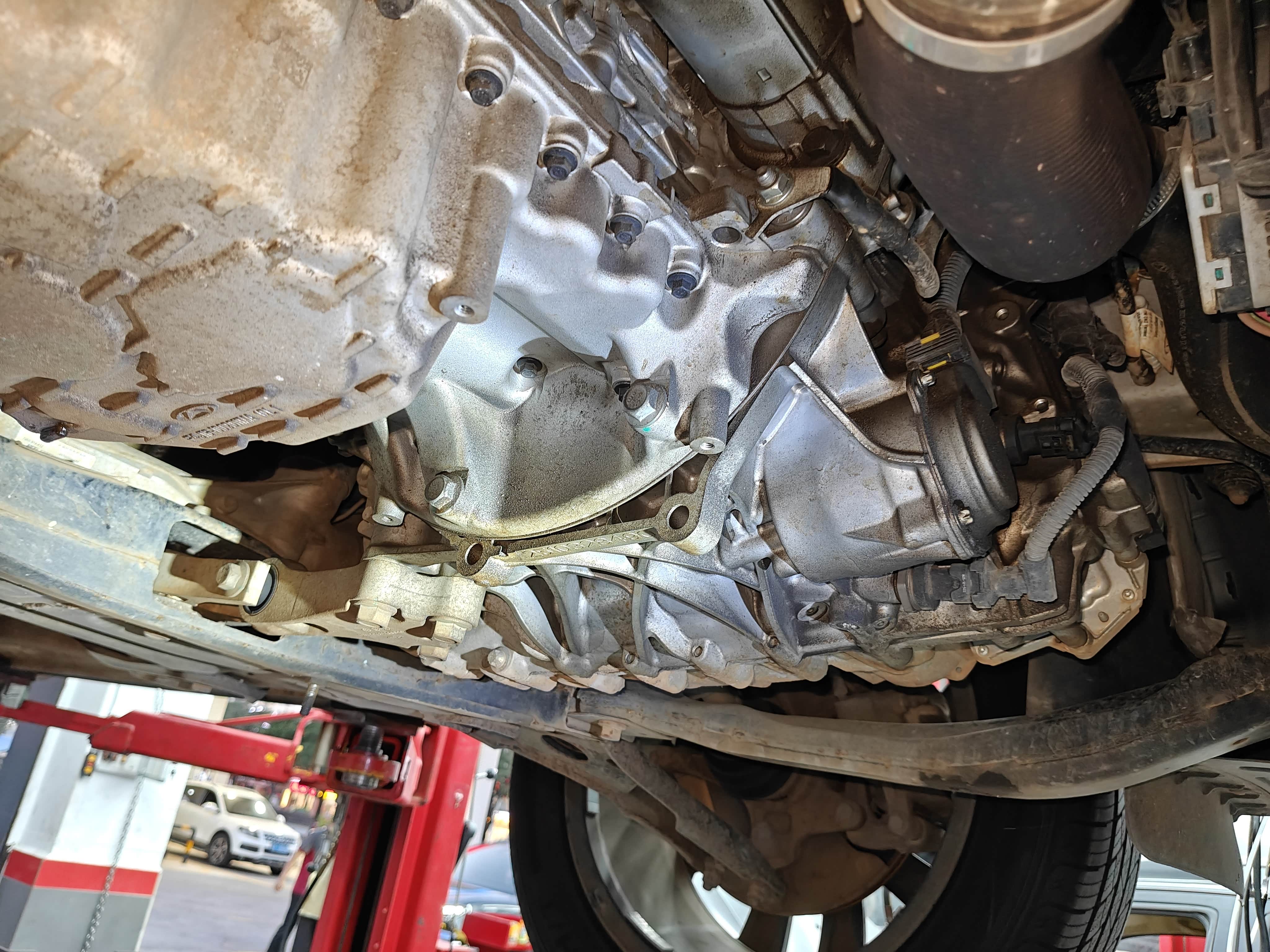 看着像是渗油,不是严重的漏。可能是密封垫老化或者螺栓松动,先让师傅把油污清理干净,后续再观察几天,要是还渗油就紧固下螺栓,或者换个密封垫就行,不用太慌。