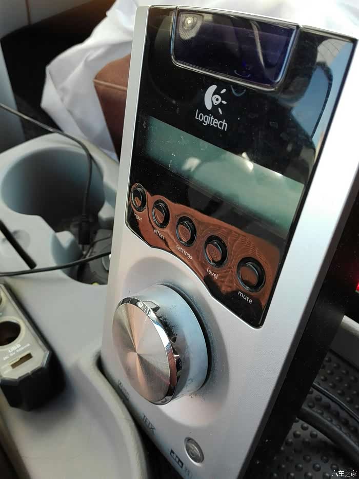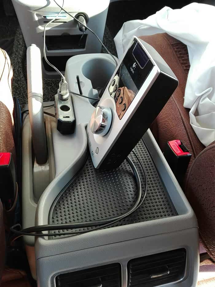 音箱在家一年就能放几回,现在又有了小孩,更加闲置了,原车喇叭效果一般,基本没有低音,改音响麻烦,今天突发奇想,接上逆变器,将音箱放到车里。10寸大炮放在这个位置,平时坐2-3人,人多随时可撤掉。临时接的,没布线,等有时间的。5.1声道先接前面3个,后面2个暂时没地方放,过一段时间再研究放哪。音箱主控。连接上手机,用酷狗放歌,可视化歌单,爽歪歪。