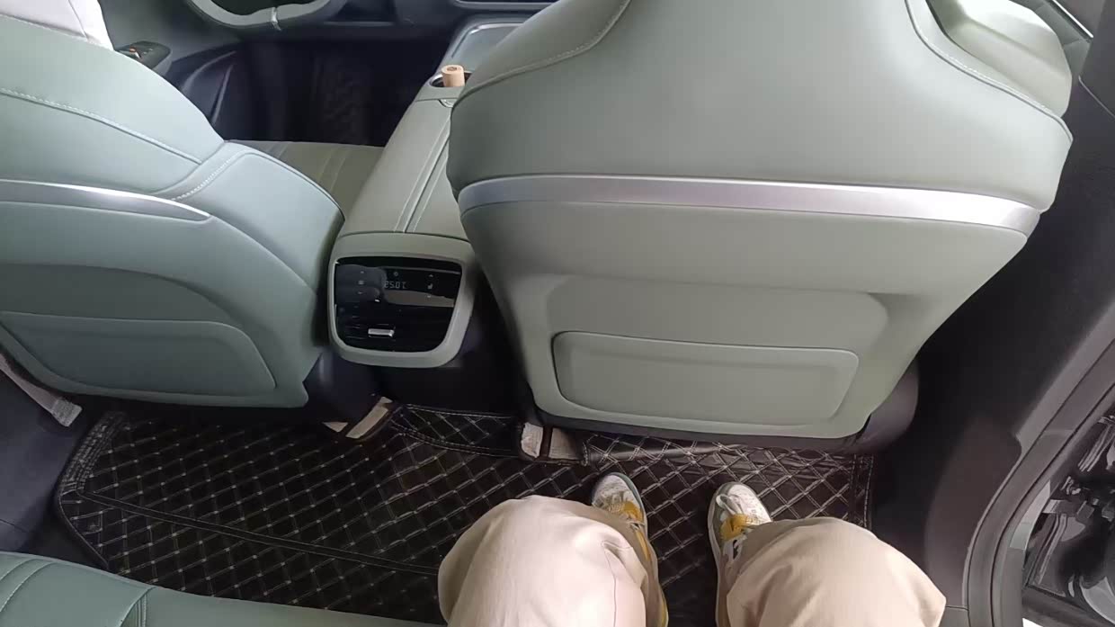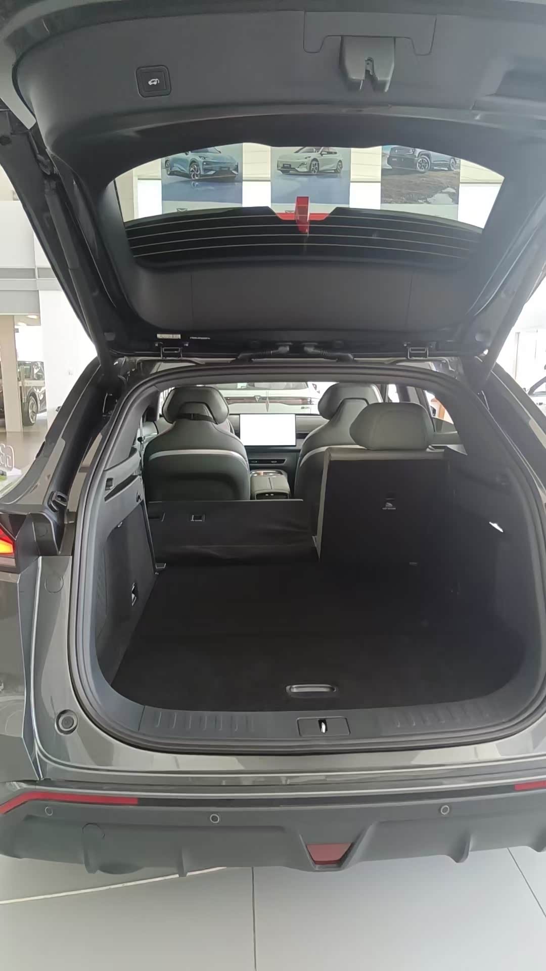 深蓝S07 的空间也是可以的,前排可以调节到最舒适的位置,腿部空间有3拳左右,这样的条件下后排空间也很宽敞,行动自如,翘个二郎腿也不是问题,后备箱空间纵深很深,家庭出行行李肯定能放得下。