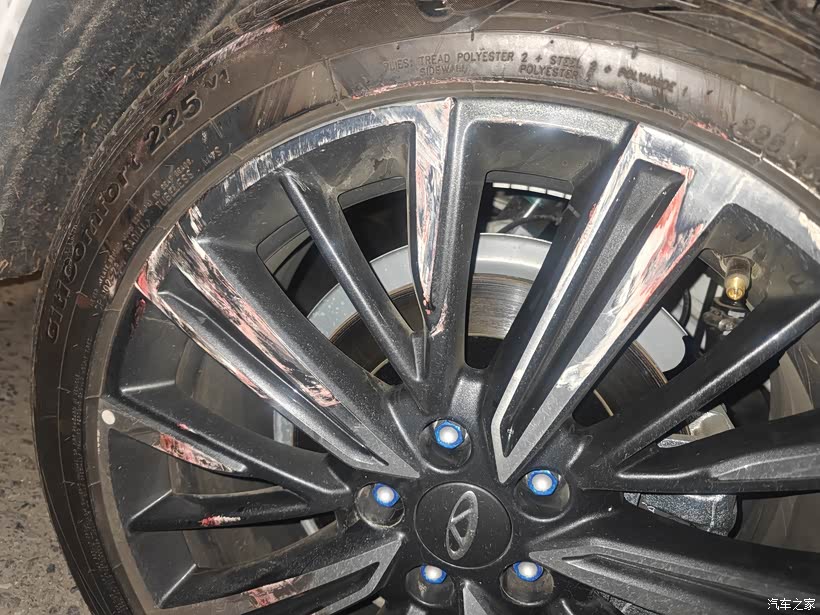 轮胎也感觉受伤严重,瞬间感觉天塌了自己核算下价格,我的车这次起码要做两个漆还有轮毂修复,估计保守估计一千多下去。