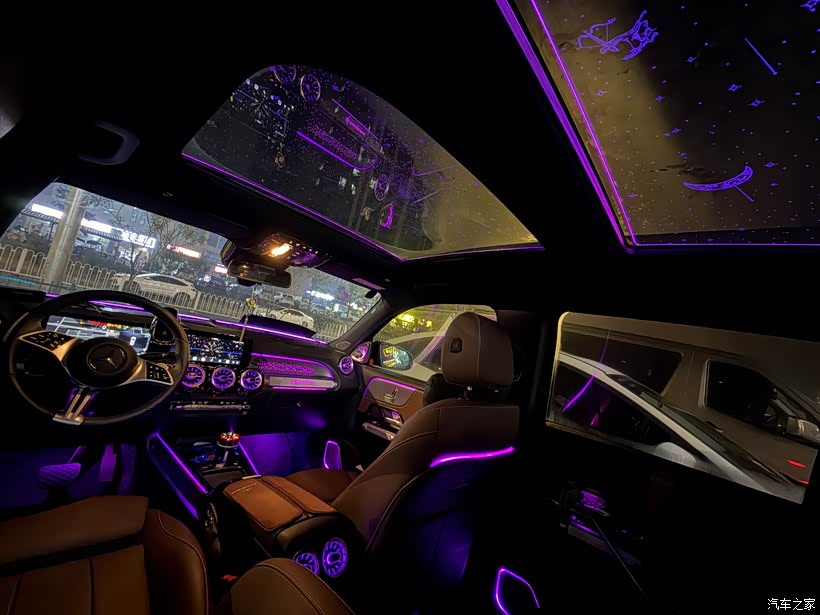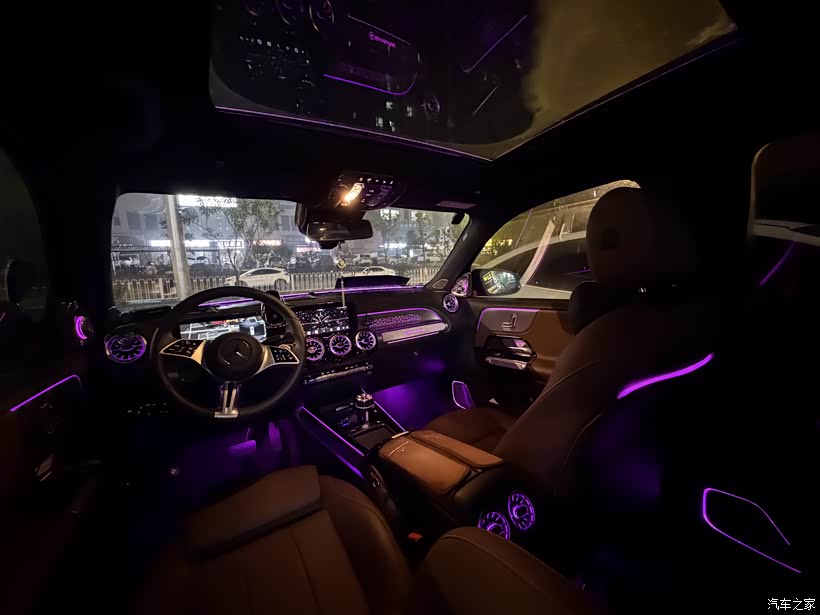 ? 奔驰GLB:就像我车上的紫色氛围灯,晚上一开,整个车厢的氛围感直接拉满。悬浮式双联屏、涡轮出风口和细腻的皮质包裹,坐进车里就能感受到豪华车的仪式感,家人朋友坐进来都会夸一句“有档次”。