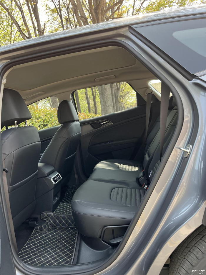 将前排按照自身身高调整好之后,进入后排坐好,膝盖距离前排还有一拳半多点儿距离,头部距离车顶也有一拳。重点是后备箱,配有隐藏式分隔储物,游玩就不说了,外出露营时,什么帐篷、折叠桌椅、零食等等还不少,可以分类放好,到户外不用到处翻翻,对于我来说很实用。
