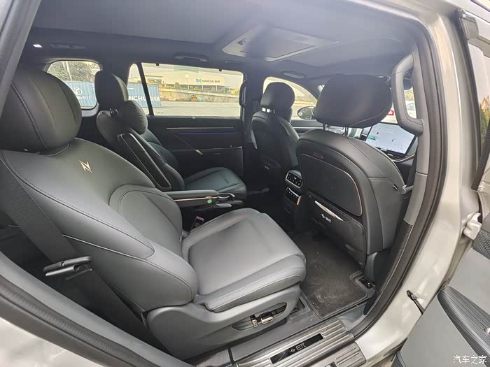 2.乘坐的舒适度:座椅令人满意,尤其是二排的女王座驾,起初我妻子认为腿托无用,但实际使用后她改变了看法,几乎总是躺着享受。唯一的不足是躺着时无法触及屏幕。二排和三排的座椅同样舒适,特别是三排,完全没有普通小板凳的不适感。然而,二排中间的冰箱轨道不处理二点话,容易积聚垃圾,特别是小孩在车内吃东西时,食物残渣容易掉入。因此,我购置了一块轨道地毯。另外,二排前排靠背的收纳空间设计得相当巧妙,自己买了个小夹层,既实用又不是硬塑料材质的收纳袋。