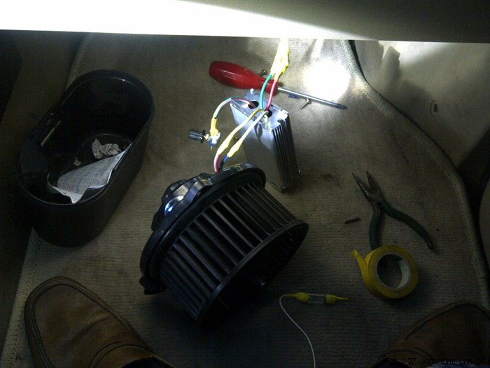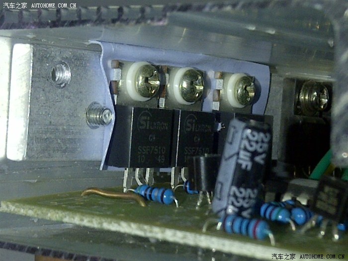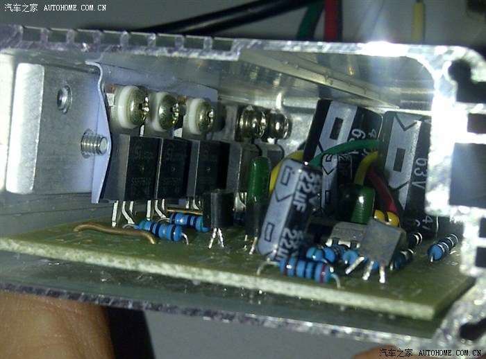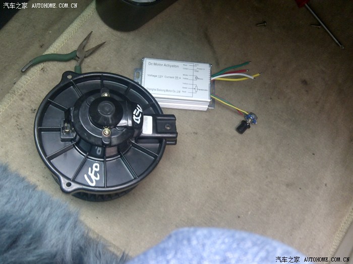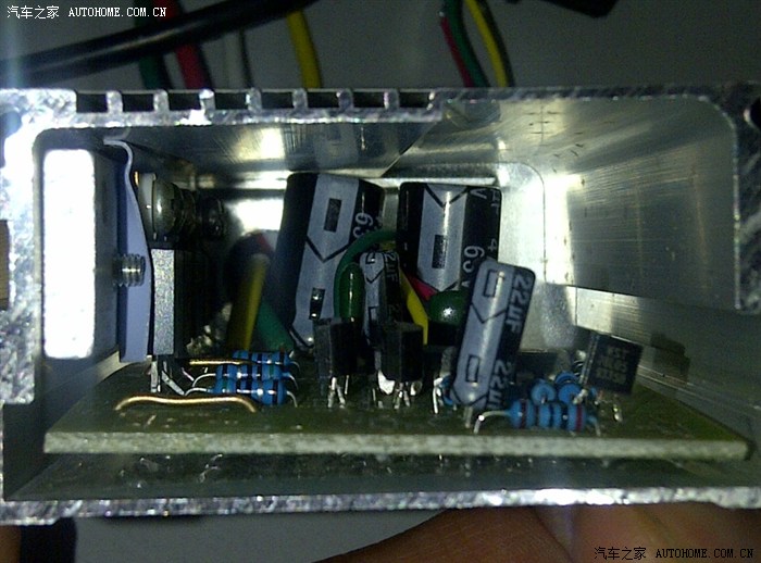 大S的空调鼓风机的风量太大,造成噪音也比较大。哪怕是最小风量也感觉风量太大。在车友的提示下决定用PWM调速模块来改善空调风量。理论上来讲PWM调速可以实现无级调速的。BMW,保时捷,大众等车的鼓风机调速模块都是PWM的。于是在TB上订购了一个30A PWM的调速模块。 拿到模块以后先拆开看看里面的结构。6枚大功率管,两个大滤波电容。还有一些分立元件。A/D转换芯片等。改装前测了一下噪音。不启动车,只开风量。一档风量噪音达到59分贝。最大风量噪音达到66分贝。