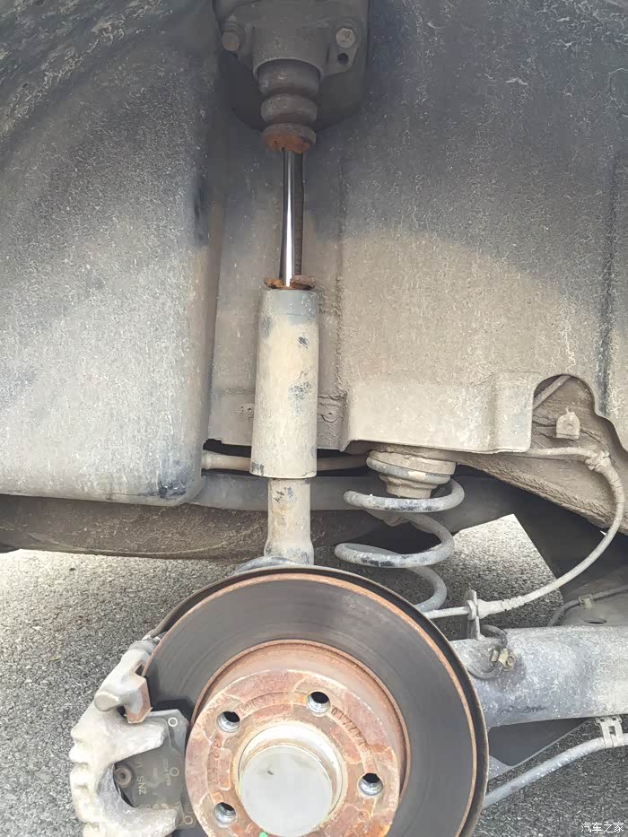 最近宝宝的手刹出了点问题,回位不正常,加了回位弹簧后改善。拆后轮的时候发现缓冲块坏了:同事说下雨会有泥沙进入避震器油封位置,造成避震器出问题,于是就淘宝了两个缓冲块自己换:顺便查了查宝宝的维修手册:准备工具:今天周日,开车找一块平坦的坚实的地面,卸下车轮:注意??:最好找几个砖头或者木块在举起千斤顶的位置支撑一下车子,防止在做拆卸螺丝的时候宝宝滑动坠地,那就惨了!不要太信任千斤顶!然后再卸下与车体连接的两个16号六角螺丝,以及和后桥连接的一个十六号六角螺丝,拿出避震器:下面用一字螺丝刀撬开顶部的塑料半圆保护盖,用六角扳手和一个活动扳手配合拆除顶部的16号六角螺丝,有条件的请安维修手册操作,用两...