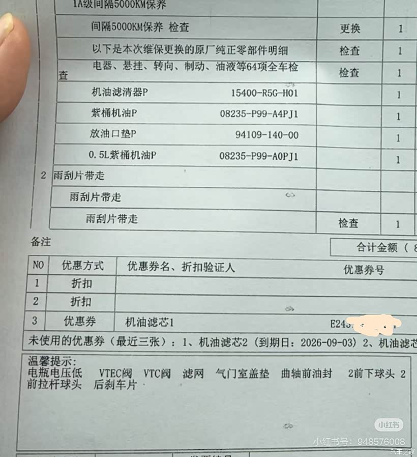 4s店 15w公里保养,车龄8年多,出现发动机渗油,球头破损,电瓶电压不足,刹车片问题。