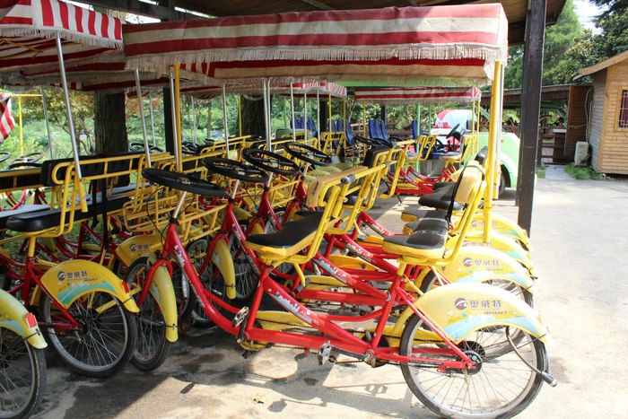 租自行车的地方,有两个人骑行的也有4个人骑行的,反正都不轻松,不如一个人骑逛逛