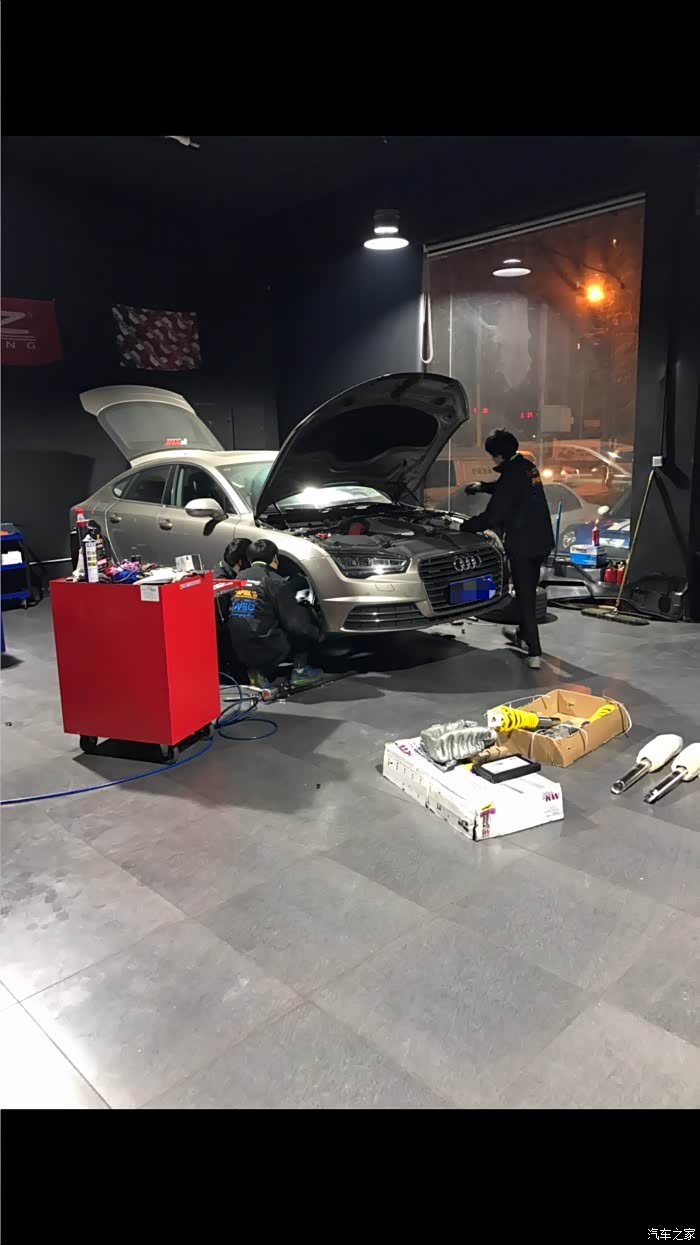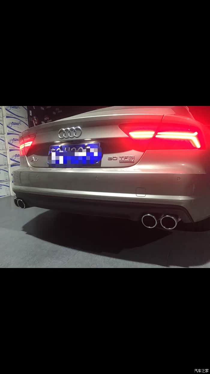 车开了4个月左右,兜里有点闲钱了,琢磨可以对爱车稍微改改了,本人对改车当时还是一无所知萌新一枚,就是开始各种网上找图,打听A7相关的改装!各种改装件一时看花了眼,也无从下手!但是我一直觉得要从操控上先下手,最后才是动力!决定先改排气,一开始想换AK,后来了解到AK并没有A7用的排气只有S7和RS7的,最后求稳妥更换了ipe!
