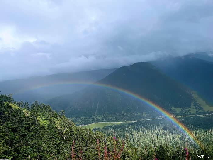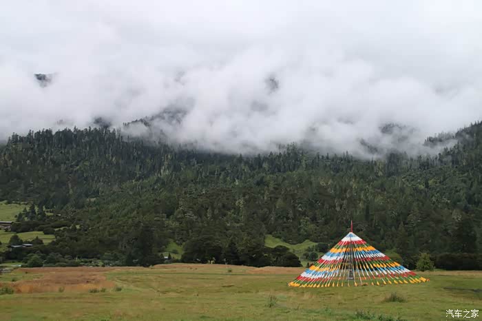 返程第一天计划赶到波密,才到林芝地界就暴雨倾盆,翻越色季拉山的时候暴雨加上大雾,车速没超30,快到山顶垭口居然下起了冰雹。没想到下山雨势减弱,反而轻松不少。接近鲁朗小镇的时候,几缕阳光透过雨云撒在路边的云南松林子里,一道彩虹紧挨着国道,仿佛伸手可及。临时起意,决定不赶路了,在鲁朗住下。