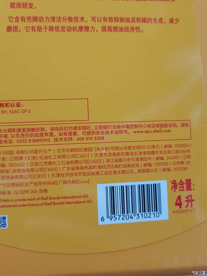 再过半年就在买车的店里做的二保,换的是黄壳的矿物质机油,5W-30的,机油如下: