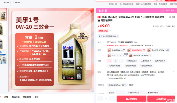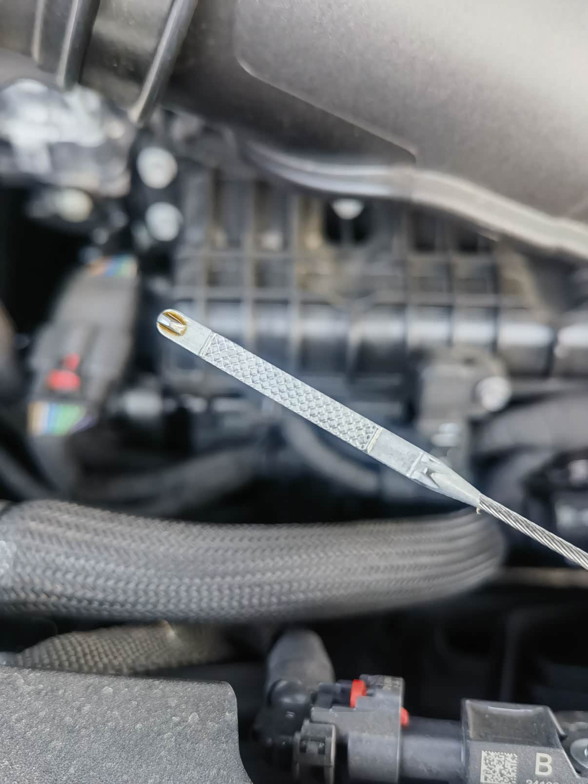 我是3月底首保,到前天正好5个月,我突然想看一看机油情况就把机油尺拔出来看了一下,一看才发现,机油尺上一点机油都没有了,我就到京东上买了一瓶一升的金美孚0W-20的机油,全部倒进去后机油正好到上下两条刻度线的中间位置,也就是5个月跑了六千多公里烧了一升机油