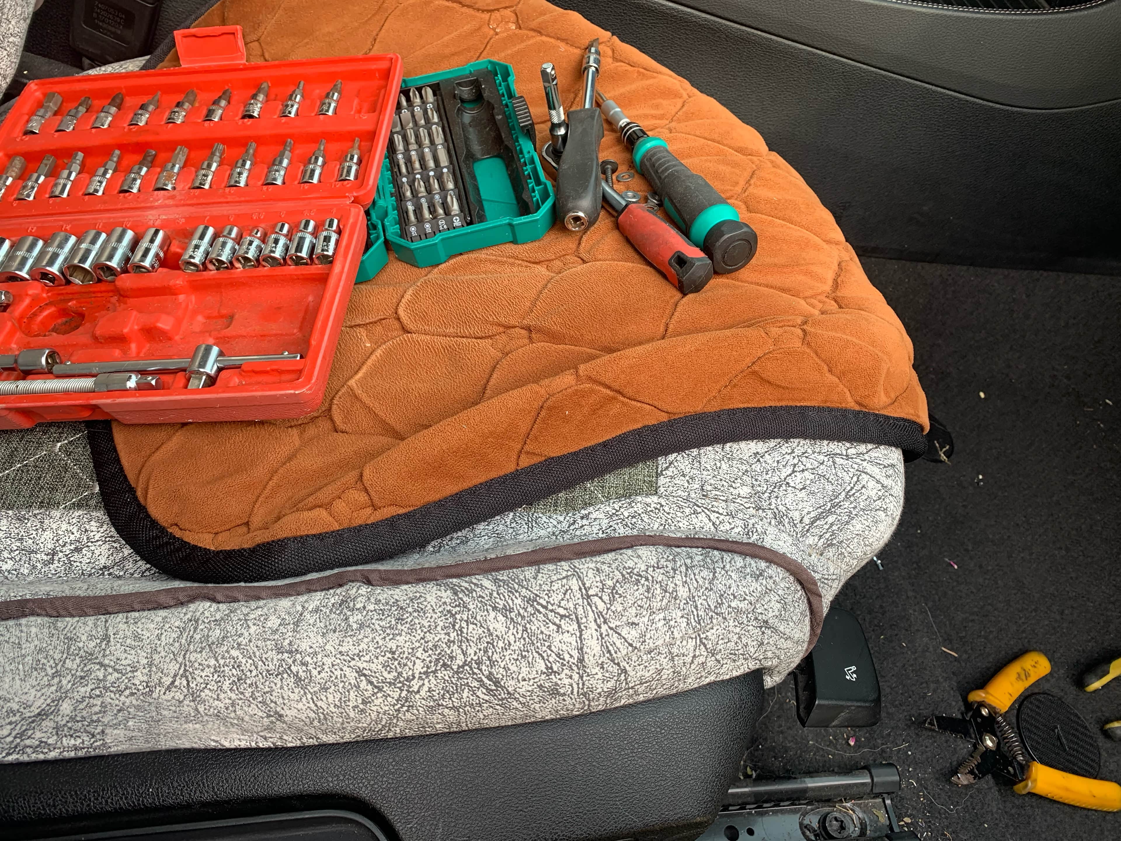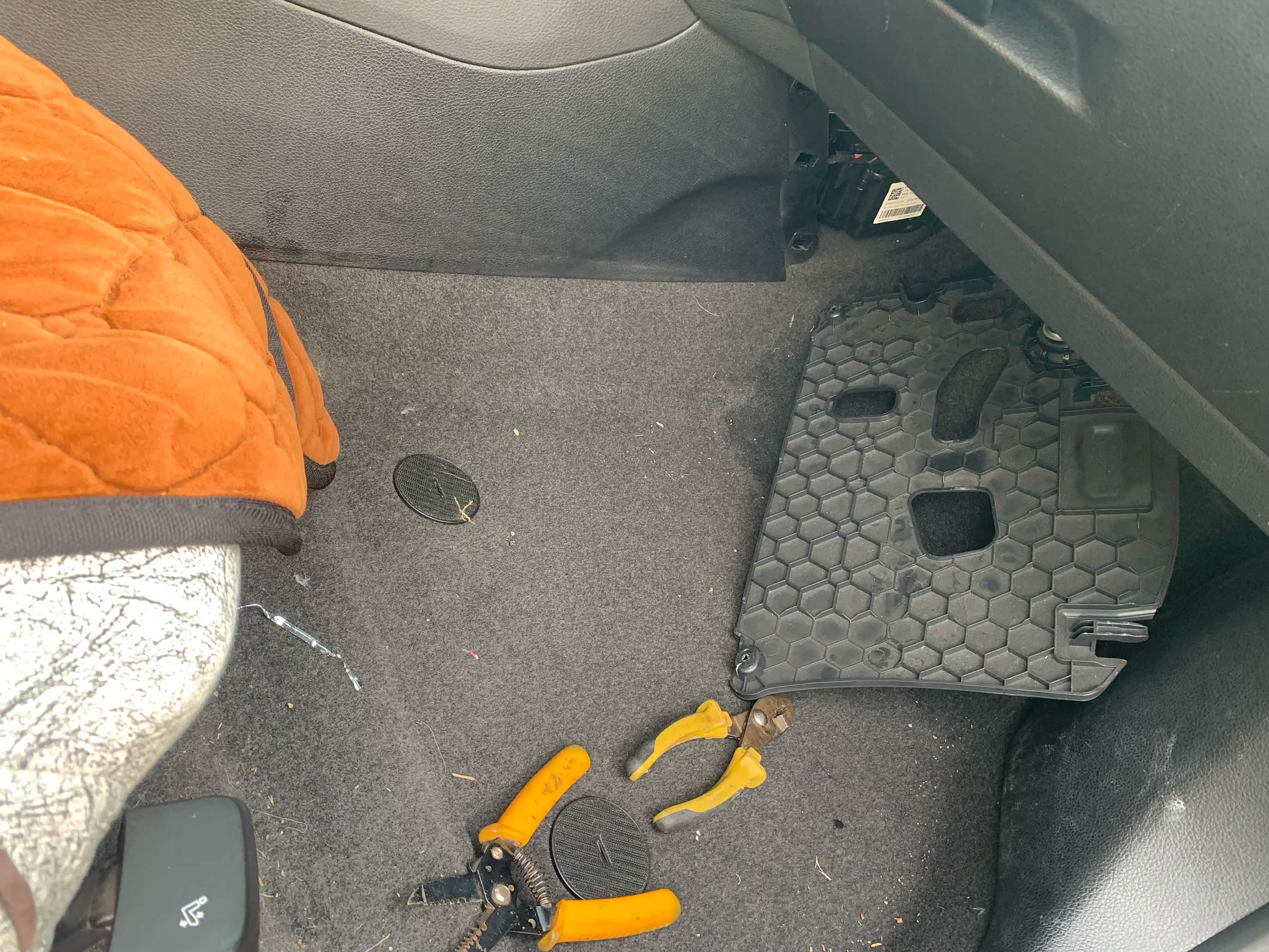 首先拆两个外六角螺母拆下手套箱下板,接着分离喇叭和脚窝灯拿走下板,用花型螺丝刀拆侧板螺钉拿下侧板。