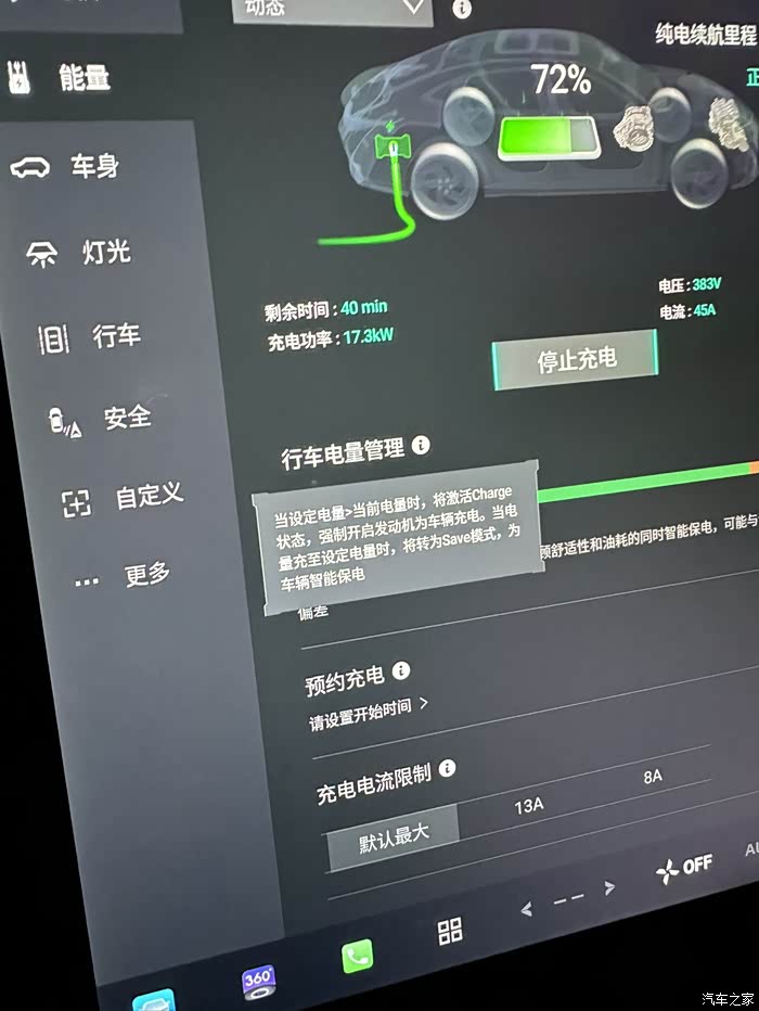 至于充电功率,官方标的峰值27kw,我最多看到过充到26.9kw,和官方没差,但后续功率是会降的,一般完全充满在1个半小时左右;纯电里程充满,我在南方,动态显示一般是110公里左右,踩的比较温和且速度在80码以下的话,预计最多打个9折。