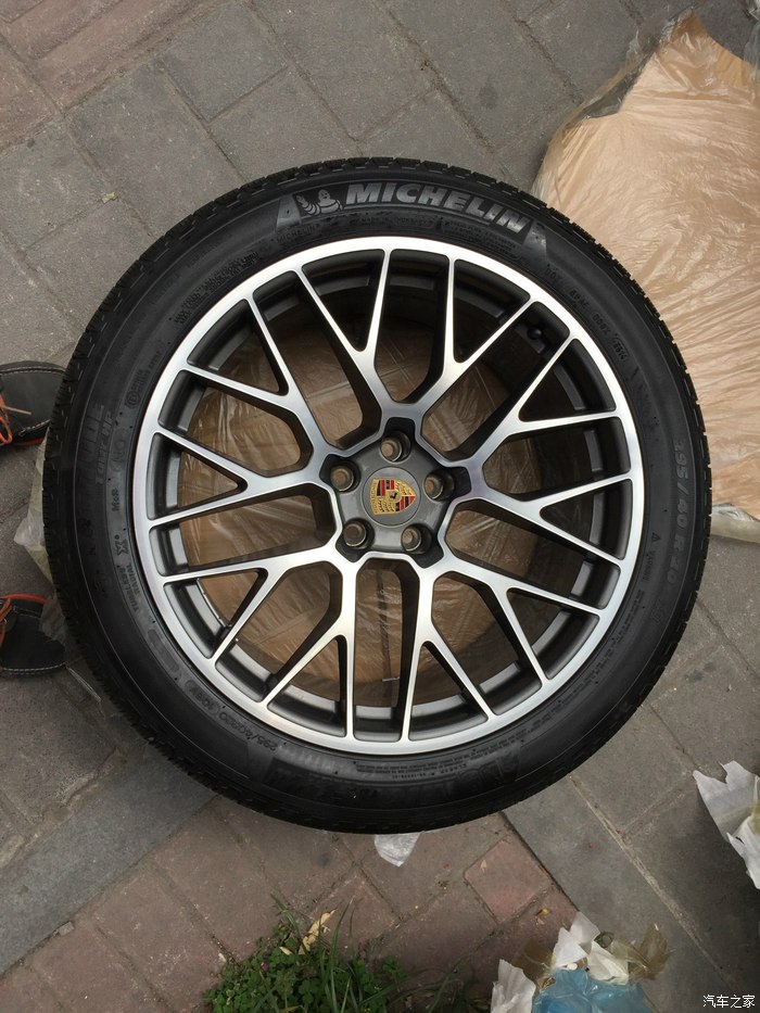 言归正传,之前买的2.0 QJ包,其中加了24000的turbo车轮,2700的彩标,纠结了快一年,终于还是决定换了。计划要换了之后,一直徘徊于 21 英寸 911 Turbo Design 车轮(2.0是加72000元) 和 20 英寸 RS Spyder Design 车轮(2.0是加48000元,这个还需要四个灰色彩标,官方价格2700),后考虑到实用性还是决定20寸RS锻造轮毂。之前微信上看到卖高仿同样是锻造工艺的同款(国产货),钢圈价格给到4000左右,胎如果配米其林差不多2500,一个差不多6500,四个26000,中间彩标,买原装便宜一点的一套1200左右吧,一共差不多27000左右可以搞定。但反复纠结,感觉把原装的换掉,换个山寨的,虽说是锻造心里还是不舒服,于是上网找原厂的,号称全新的价格一般在45000左右,高的有卖到50000左右。自己后来找到一家拆车件,便宜很多,并且找到处理掉已跑15000KM的旧车轮的下家,于是干了,