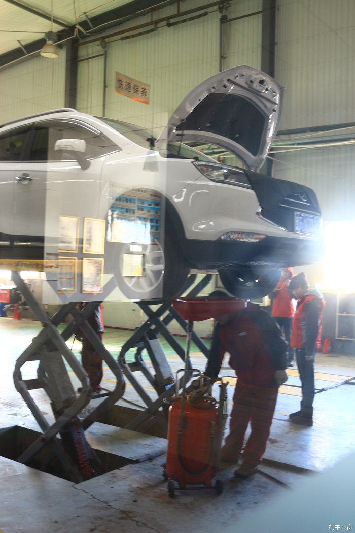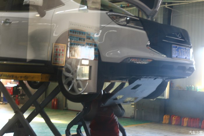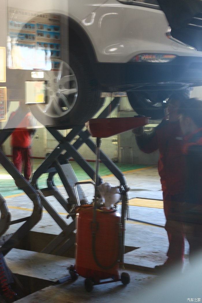 因为自己的是手动豪华智能型的,按照手册上讲的,应该更换机油、机滤和变速箱油,但4S一口咬定,新车到店下板车后,已经给更换了防冻变速箱油,这个只定是不信的。因为本人建了群,所以在我保养前和首保完的车友专门就此问题,专门去了4S了解过,但4S还是一口咬定此事,大家没办法,人家态度还不错,所以没有向厂家反映,不知其他地方的4S有没有这种情况。所以首保只给更换了机油、机滤,和做了一些常规检查。保养时不让进车间,只能在等候区透过玻璃拍了几张照片。知道也就这样,就帮其他车友去试车了,其间还帮一位车友把道道通改了凯立德导航。