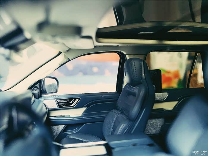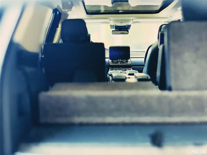 自带大平层及全景天窗,类似方盒子的造型,在兼具霸气与美感的同时,也充分兼顾了车内全员,尤其是后排乘员,拥有更加敞阔的乘坐空间。