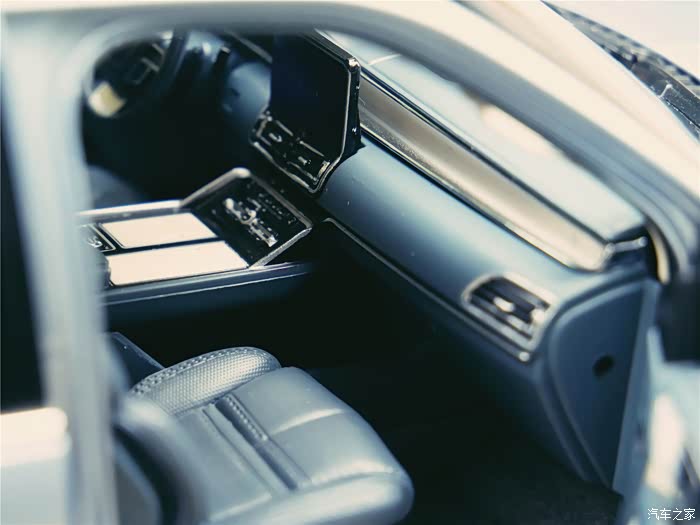 模型可见到的,如钢琴键式电子按键换挡、12.3寸的全液晶仪表盘与10寸多点触控中控屏。