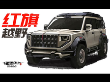 汽车手绘红旗越野