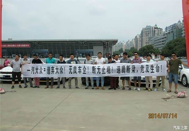 2014年7月,一汽-大众发布官方声明:“后悬架断裂”故障属于“个别案例”,非质量问题,谣言惑众者还将追究法律责任。