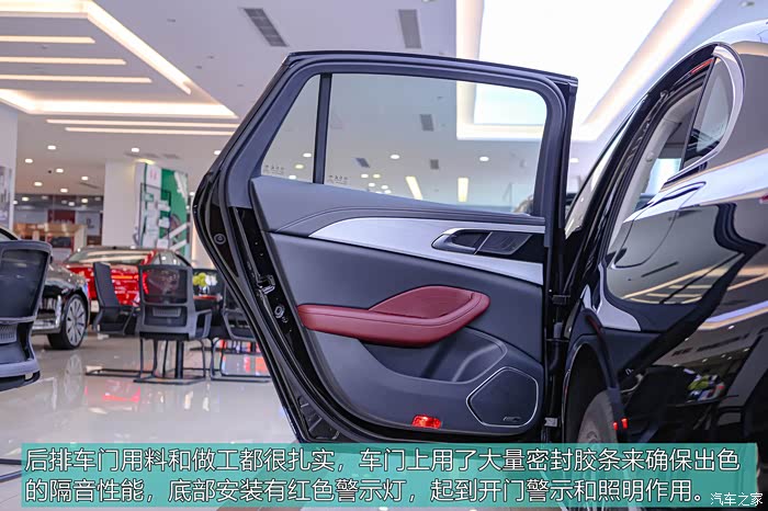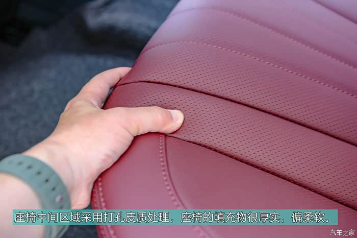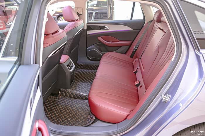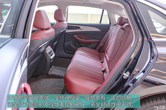 驾驶舱内配备了全景天窗,前后排座椅均采用打孔皮革包裹,皮质柔软,有真皮材料的质感,座椅的填充物偏柔软,乘坐时对身体的支撑性表现的像沙发质感,后排的空间感表现很出色,坐好后腿部和头部都有很充裕的空间,乘坐舒适性很好;前排座椅具有电动调节和加热功能,后排座椅具有中央扶手,可按四六比例分别放倒;前排车窗玻璃还给配置了多层隔音玻璃,驾乘的舒适性表现的非常不错;