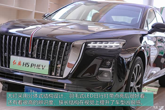 将红旗H5 PHEV与红旗H5放在一起,外观上看,,基本上是一模一样的,红旗H5 PHEV延续了红旗H5的经典设计。