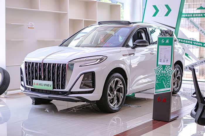 红旗HS3 PHEV,搭载插电式混合动力系统的紧凑型SUV,CLTC纯电续航最高125km,满油满电状况下CLTC综合续航可达1420km。外观和内饰与燃油版红旗HS3保持了高度相同。外观上采用了红旗家族化设计语言,细节上加入了运动元素设计,在外形上显得动感时尚;车身尺寸长*宽*高分别为4655*1900*1668mm,轴距2770mm,虽然定位是紧凑型SUV,但在车身尺寸和内部空间表现上拥有越级车型的表现;车内用料很有高档感和时尚感,用料和做工都很有质感。官方指导价15.98万~16.18万,现在终端优惠最高可达2.7万,还有提供置换补贴、金融免息等,优惠后的价格吸引力非常大。