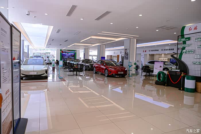 我们来的这家4S店拥有红旗燃油车与新能源汽车的双重授权,展厅规模比较大,展厅内的展车各种车型一应俱全。