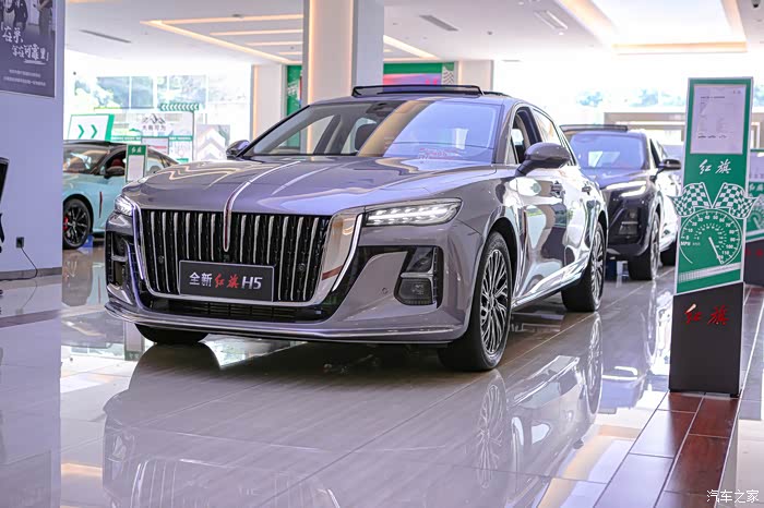 这是全新红旗H5,作为红旗旗下最为畅销的轿车车型之一,红旗H5外观上采用红旗家族化设计语言,飞翼式前脸、直瀑形进气格栅、气贯山河旗标、分体式LED大灯、贯穿式尾灯、小溜背轿跑车身等等,辨识度极高,运动感十足;内饰方面,环抱式座舱、大面积软性材料包裹、12.3英寸全液晶仪表盘、12.6英寸竖向中控大屏、红旗智联中控系统等等,车内营造的富有高档感和科技感;B级车型定位带来宽敞空间、座椅柔软舒适,多层隔音玻璃等等配置,确保了红旗H5优秀的驾乘舒适性体验;动力系统方面,红旗H5提供搭载1.5T涡轮增压发动机+7挡湿式双离合变速箱、2.0T涡轮增压发动机+8挡手自一体变速箱两种动力组合,全系配备全独立悬挂系统组合、支持标准/舒适、经济、运动、自定义/个性化等多种驾驶模式,WLTC综合油耗低至6.2L/100km。