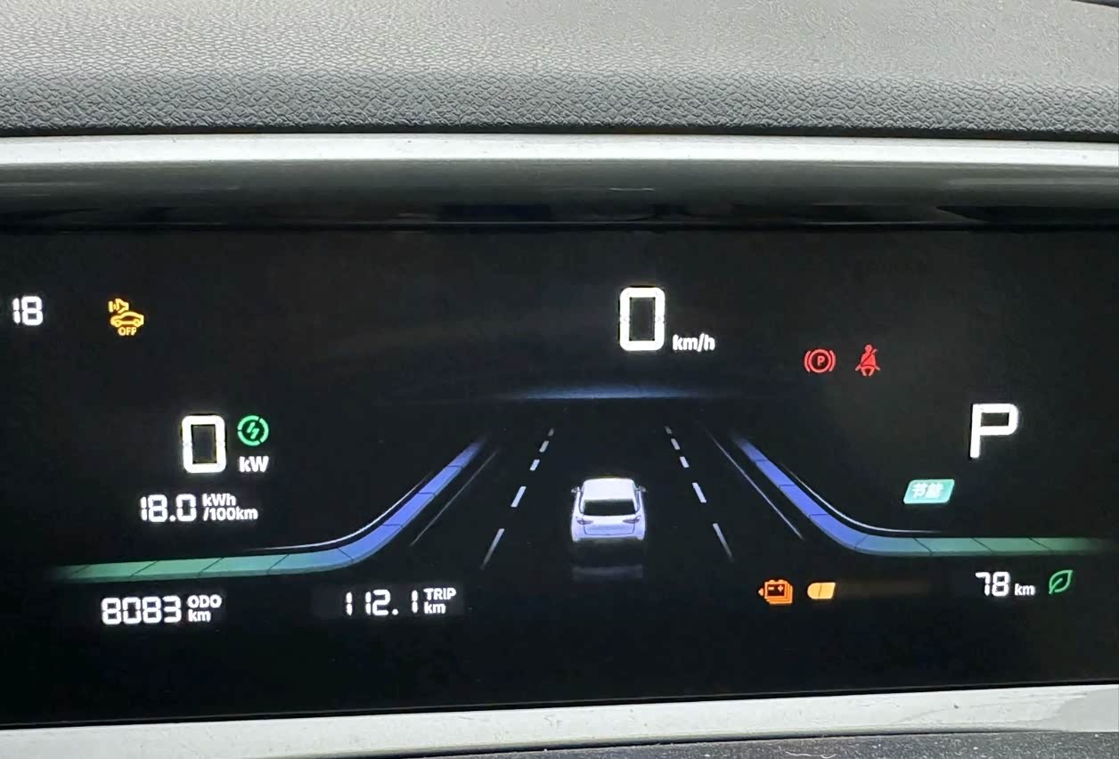 像我所在的北方基本在零下7度到15度左右最冷的时候,而它的续航显示公里数有400多,但其实呢跑到公里数只有200多公里这个是电池新能源,没办法的情况,虽然这么小的车,但电耗依然不低。