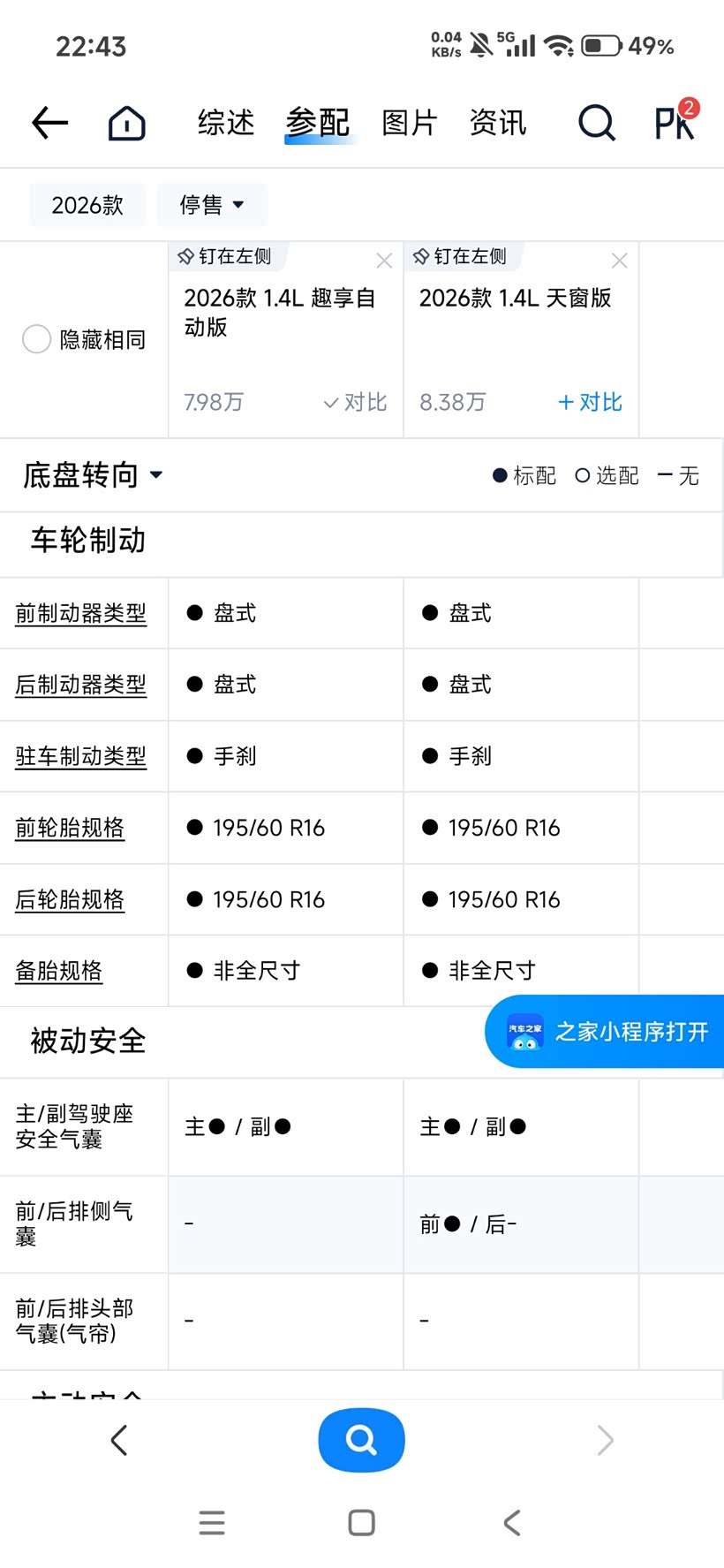 价格确实是便宜了,对此了其他几台同为CVT1.5L小排量自吸的国产小型SUV:奇瑞瑞虎3X ,吉利睿蓝汽车Pro X3,五菱星驰,这合资品牌1.4LCVT5.59万起步确实不贵。排量也就小了0.1,可以忽略不计,但前刹也减配成普通盘了,虽说也够用,但我以前2.99万买的长安奔奔mini也是前通风盘啊!还有吉利熊猫和比亚迪FO也都是前通风盘,奇瑞QQ倒是前普通盘,当然后刹统一都为鼓。