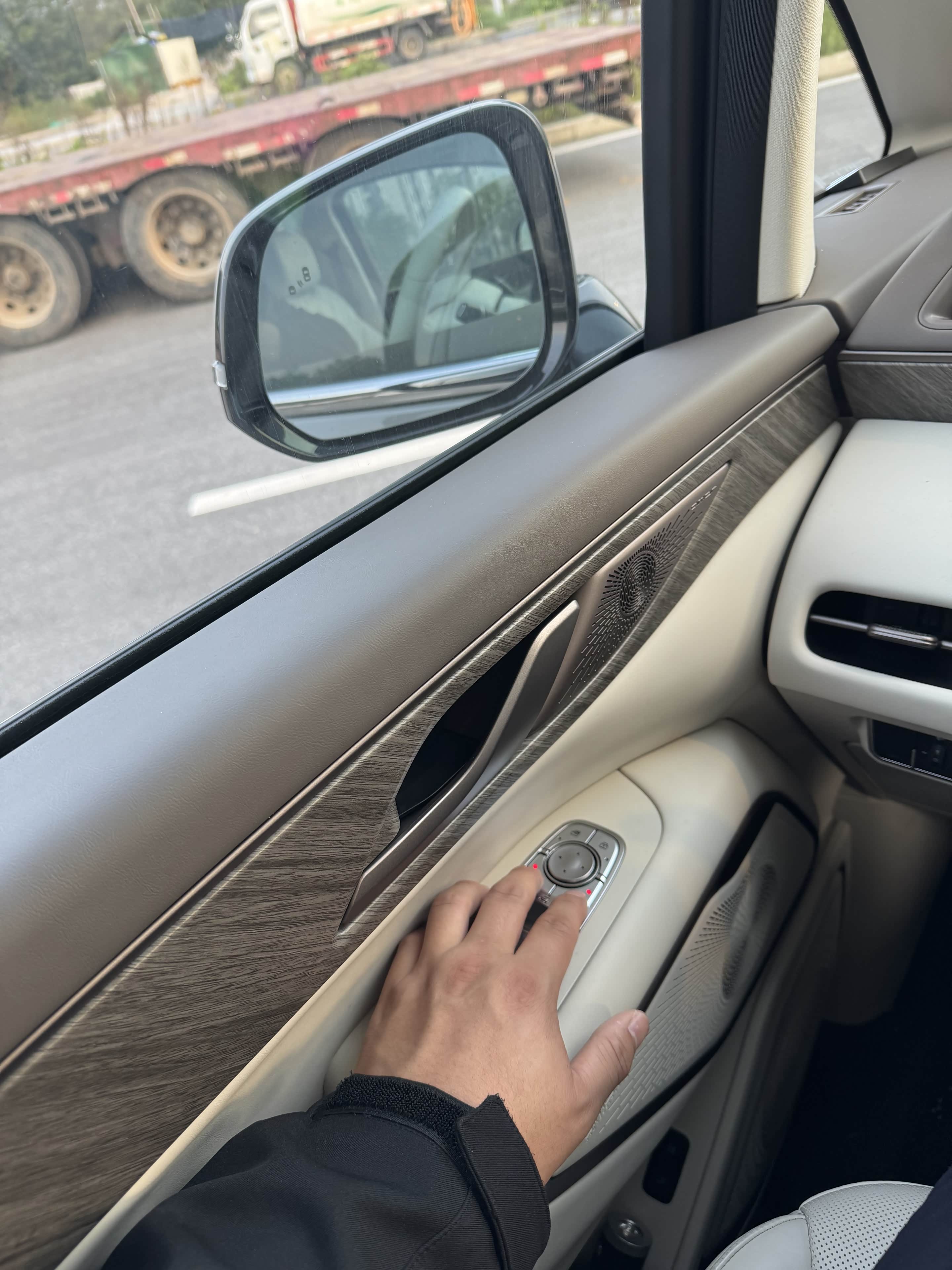 方式一:通过实体按键操作,在主驾驶门板上找到有后视镜标志的按钮,两个手指同时按下,这时候后视镜便开始执行折叠或展开,如果单按一个按键的话,那么就是调节单侧后视镜的功能哦!