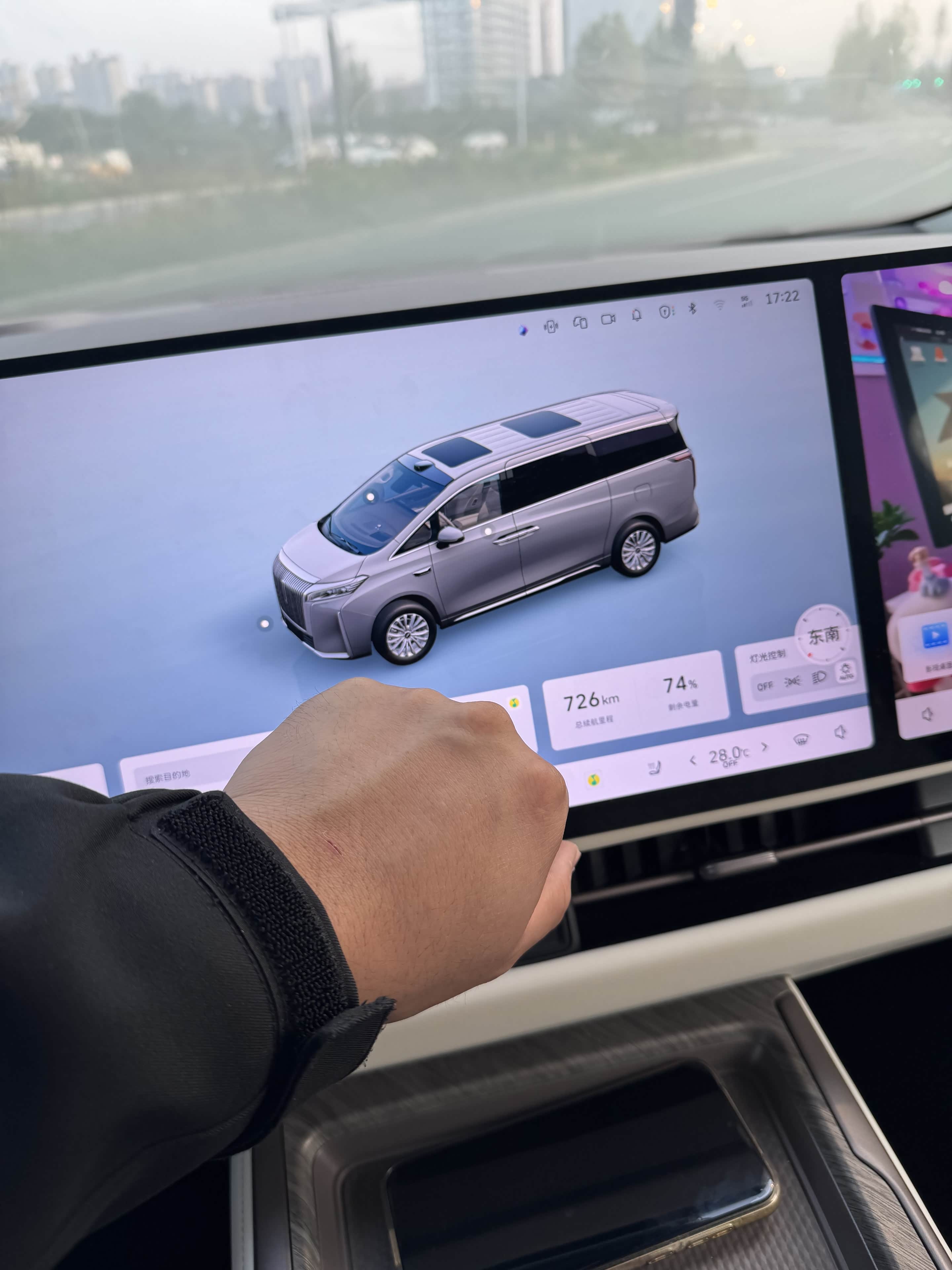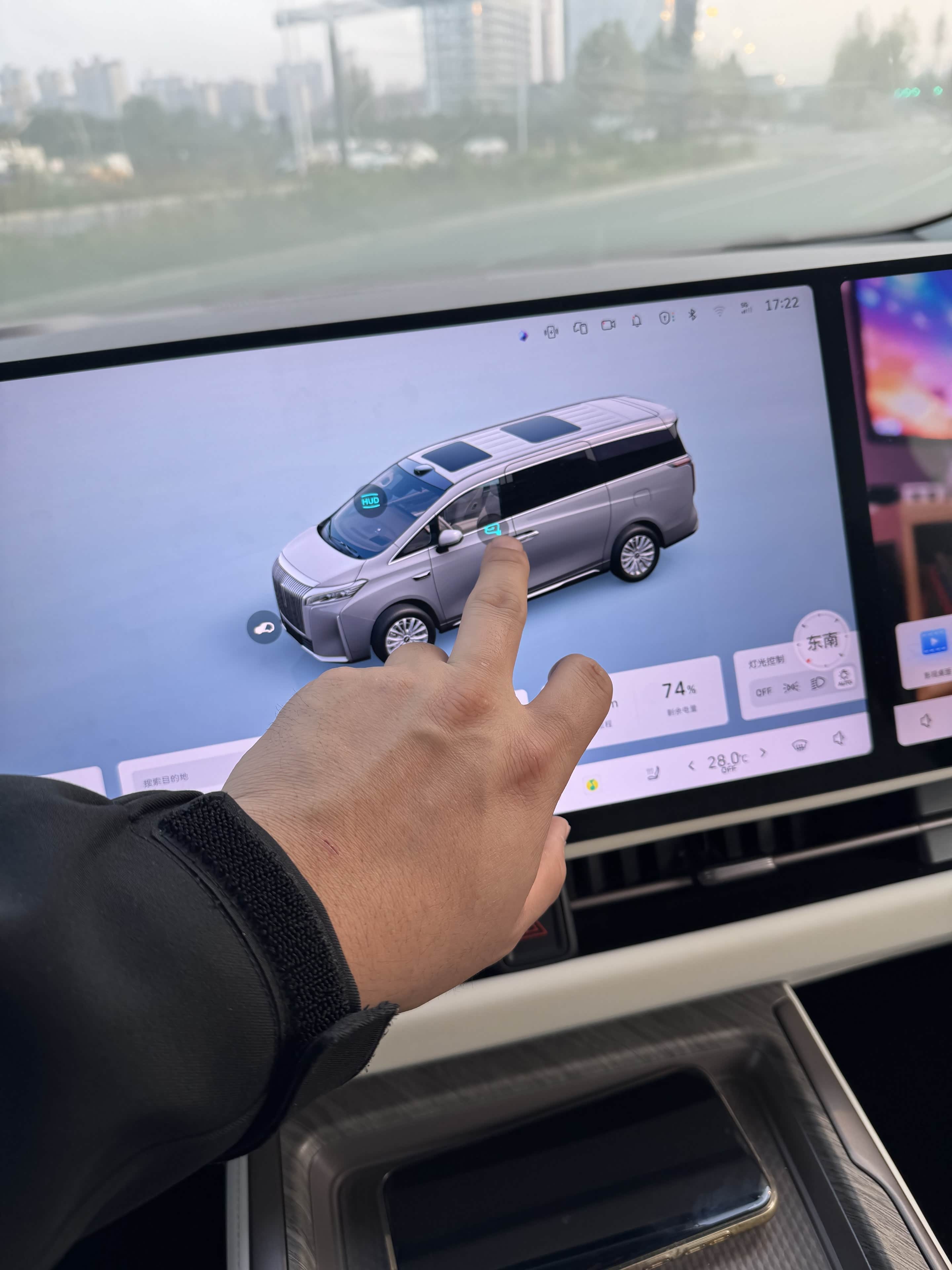 方式二:通过3D桌面进行折叠或展开,手指从屏幕上方从上到下拉动下下滑菜单栏,然后点击3D桌面,此时可以看到桌面为一个3D车型图,在后视镜的旁边有一个小圆点,点下小圆点便开始执行折叠或展开,而且桌面也有动态显示动画!