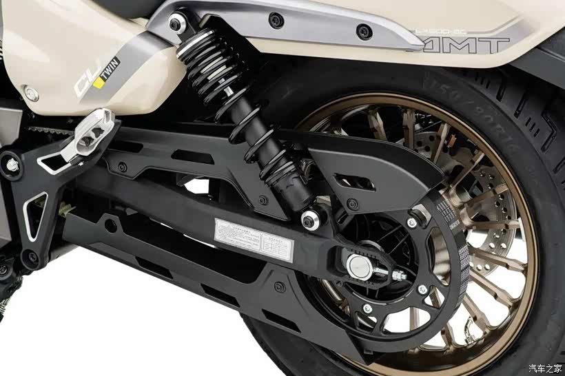 我们可以看到新款CU625 AMT版带来擎天灰、泰坦黑两款新配色,除了外观配色以外整车在装饰件以及发动机外观件上都做了更统一的色调搭配。例如前后减震支架、尾灯延板、排气口外罩、空滤护罩等改为暗调银灰色的处理,带点古铜色的前后轮毂以及发动机也更有质感。