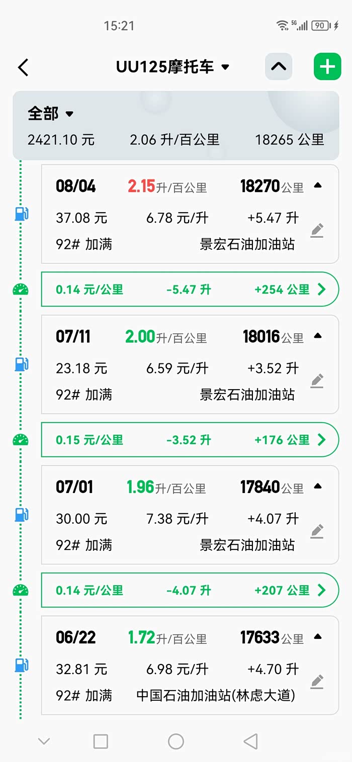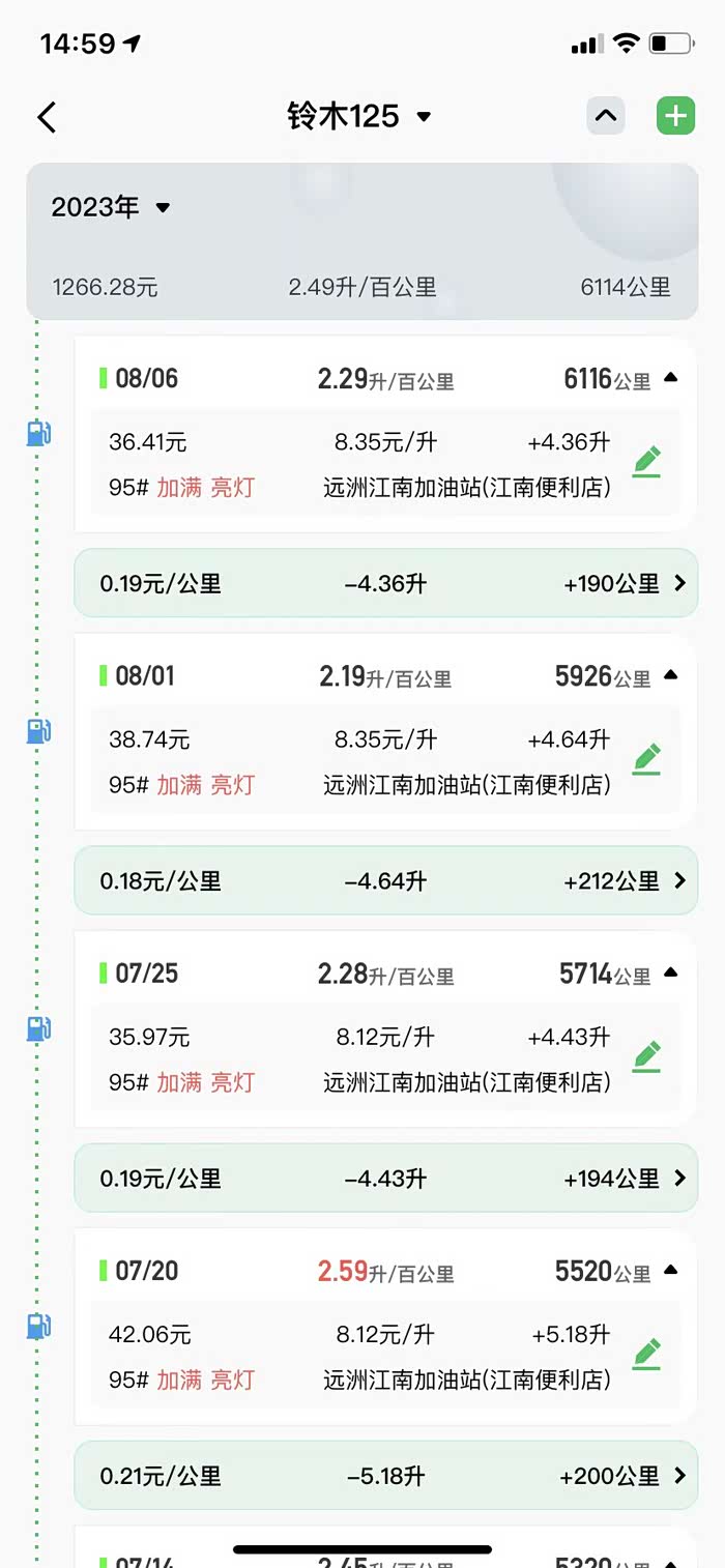 今年1月中旬入手铃木UY125已经半年有余,里程已经过6千公里了,加95号油,每次加油量都是4到5升之间吧,每次都开到200公里出现双闪就去加油了,所以我认为UY125极限里程顶多就是230公里以内,我属于高油耗车手,小熊软件提示我属于英熊坦克手