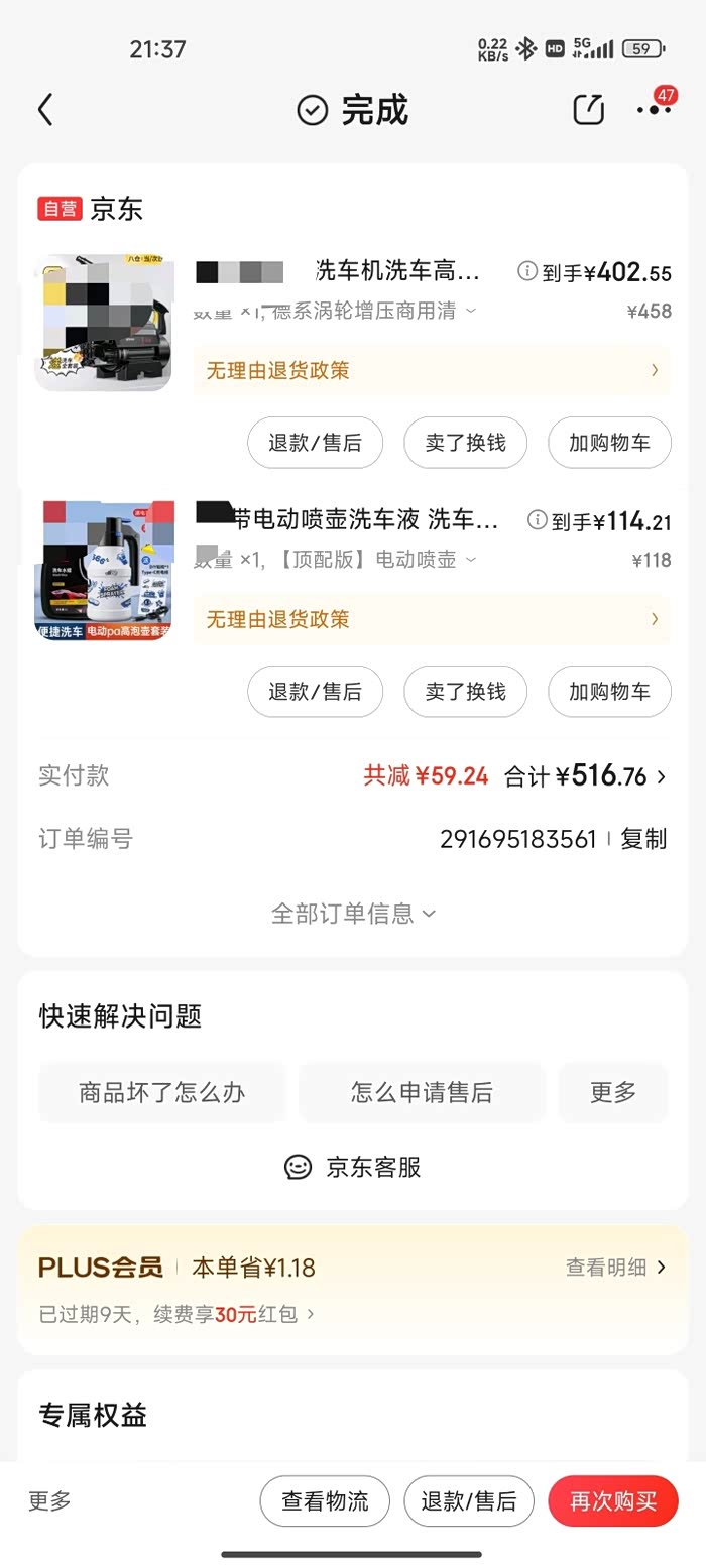 洗车:基本没花什么钱,平时不是加油站洗车,就是公司自己洗车。买了一瓶洗车液加高泡壶114.21元,洗车机不如公司现有的好用,所以退掉了。买了一块擦车布49.9元。