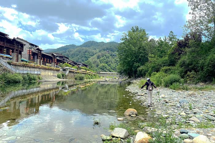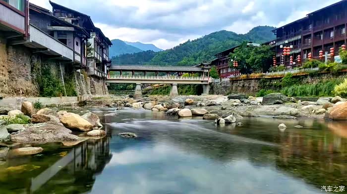 两岸古香古色的建筑与山水相映成趣,美得让人目不暇接,举着手机随手拍,原相机镜头里的画面根本不用加滤镜,每一帧都是浑然天成的绝美画卷,按快门的手停不下来,只觉得眼里看不够,镜头也装不下这满目的景致,连呼吸都带着几分沉醉。