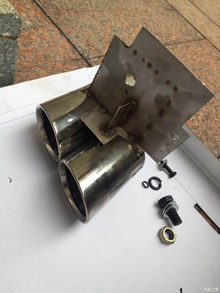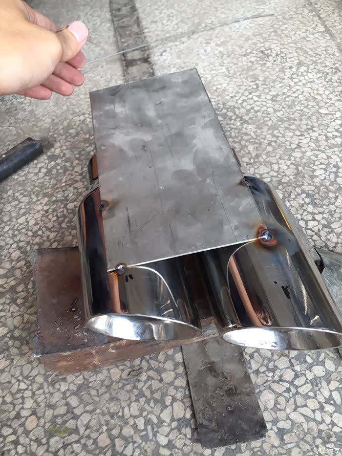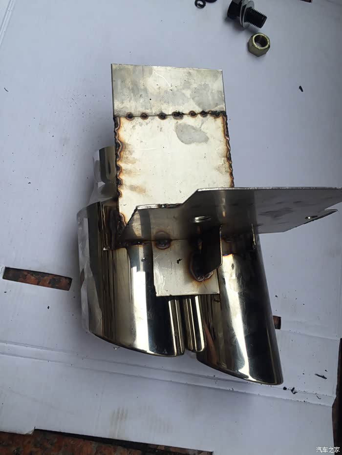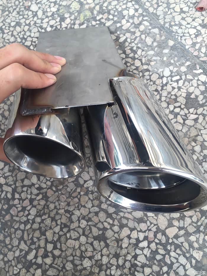 假四出排气,材料费200块(两个尾咀,两个装饰尾喉,原来那边排气我也加了两个装饰尾喉没算在内),焊不锈钢费用30块,打孔10块,切割20块,总共费用260块这样,因为是自己研发,所以就没产生改装费用啦
