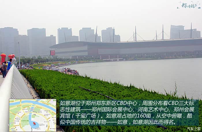 如意湖位于郑州郑东新区CBD中心,周围分布着CBD三大标志性建筑——郑州国际会展中心、河南艺术中心、郑州会展宾馆(千玺广场)。如意湖占地约160亩,从空中俯瞰,酷似中国传统的吉祥物——如意,如意湖因此而得名。