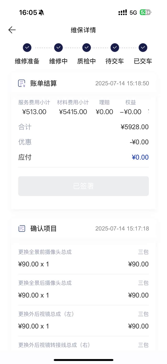 这个已经是我的360摄像头第二次进水更换了,距离上一次摄像头进水更换已经是半年多了,深蓝售后也积极反馈厂家订新的配件进行更换处理,售后再向厂家反馈问题,然后厂家发新的配件到店,然后售后就联系我到店进行更换配件,两次更换都是免费更换的。