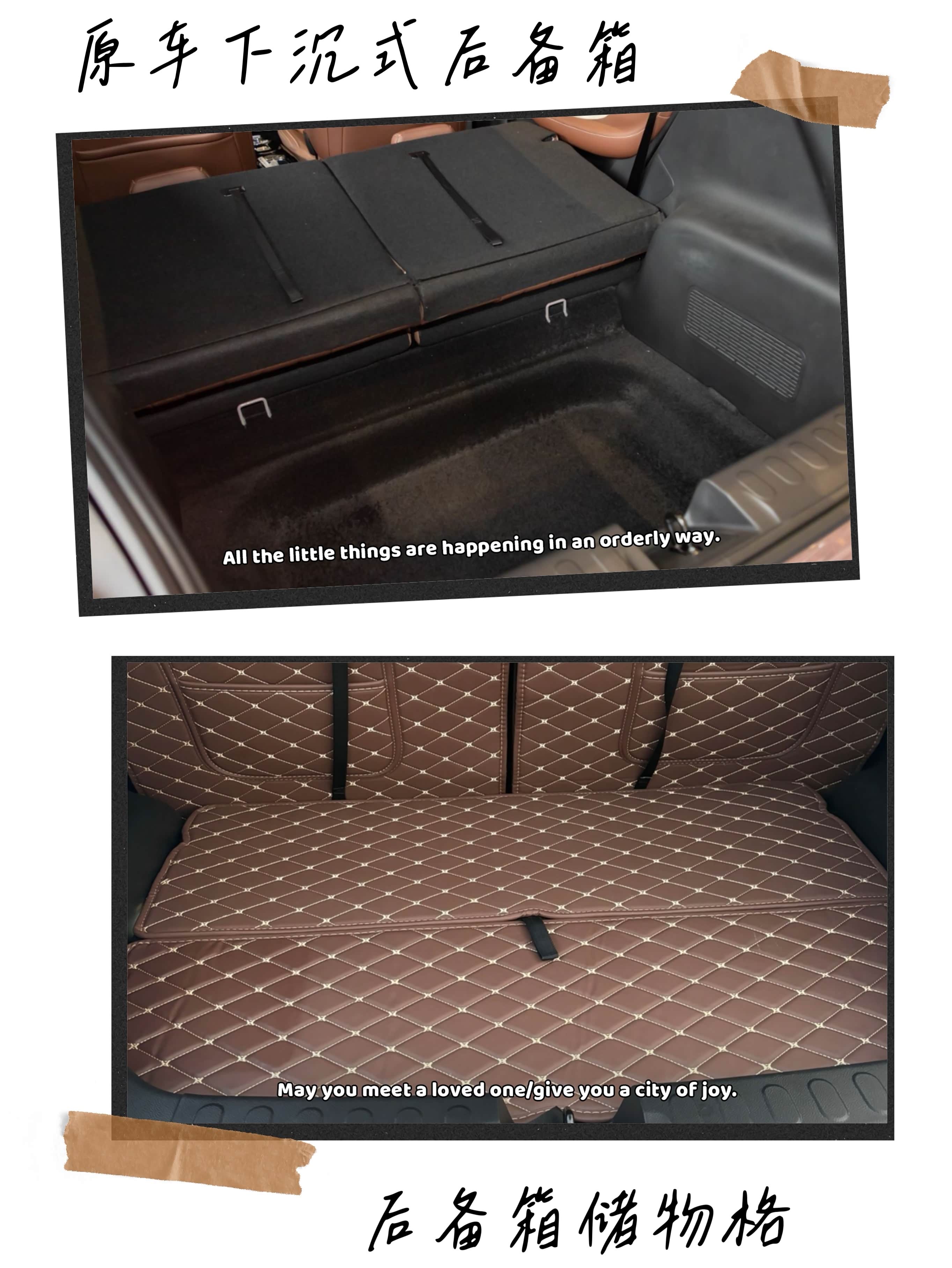 ❤️下沉式后备箱:这绝对是神来之笔!深度惊人,轻松塞下婴儿车、24/28寸行李箱、甚至折叠自行车。周末大采购?几个大号购物袋不在话下,过年回老家也能塞下不少年货。之后我又安排了后备箱储物格,这下放东西更加井井有条了。
